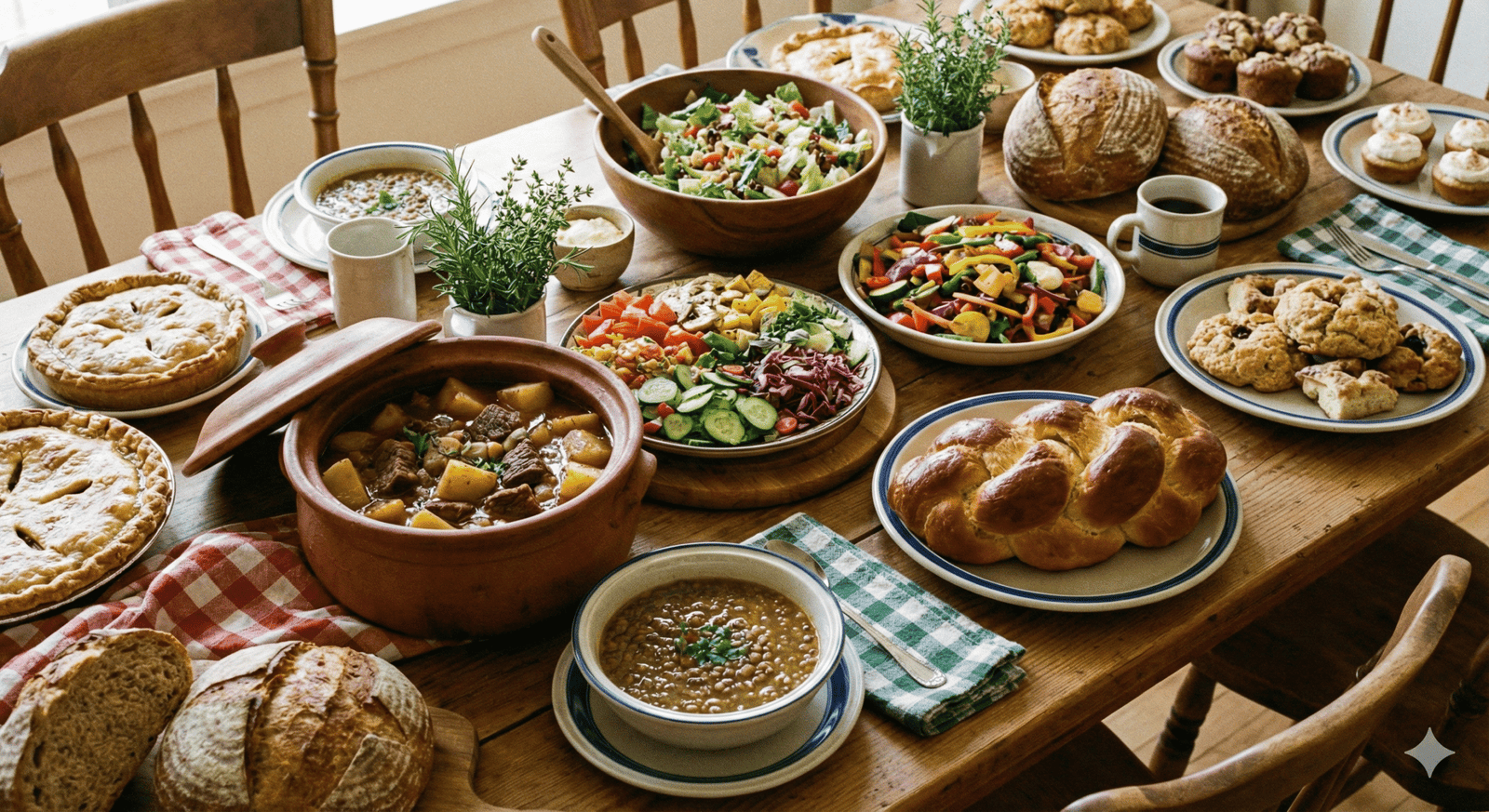 תבשילים, סלטים, מרקים ומאפים מלוחים.